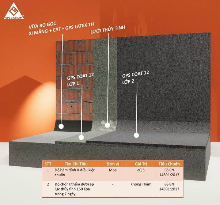 GPS® Coat 12 là hợp chất chống thấm gốc xi măng polymer cải tiến hai thành phần, khi trộn vào nhau tạo thành lớp hồ dẻo thi công lên bề mặt bê tông hoặc vữa để ngăn chặn sự thấm nước.